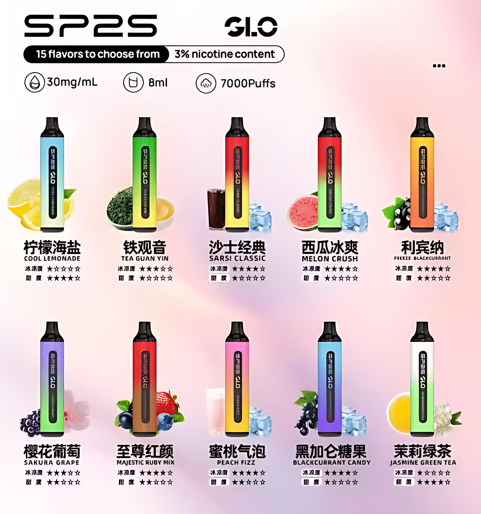 爆款上新-sp2s-GLO-7000口 拋棄式電子煙-15種口味-長續航·大口數·極致口感